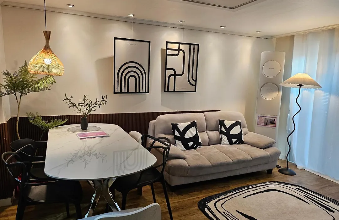 The 60 m² apartment is located about a 10-minute drive from the Myeongdong Shopping Street and close to Namyeong underground station. 4.4 km from Yongsan Hyochang Park 3 Minutes, Breakfast Provided For More Than 5 Nights, Luggage Storage Service apartment guests can visit the Gyeongbokgung Palace. The 236-meter-tall N Seoul Tower is approximately 25 minutes' walk away.